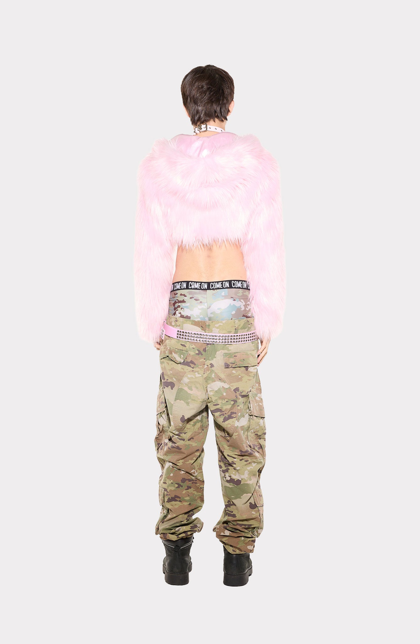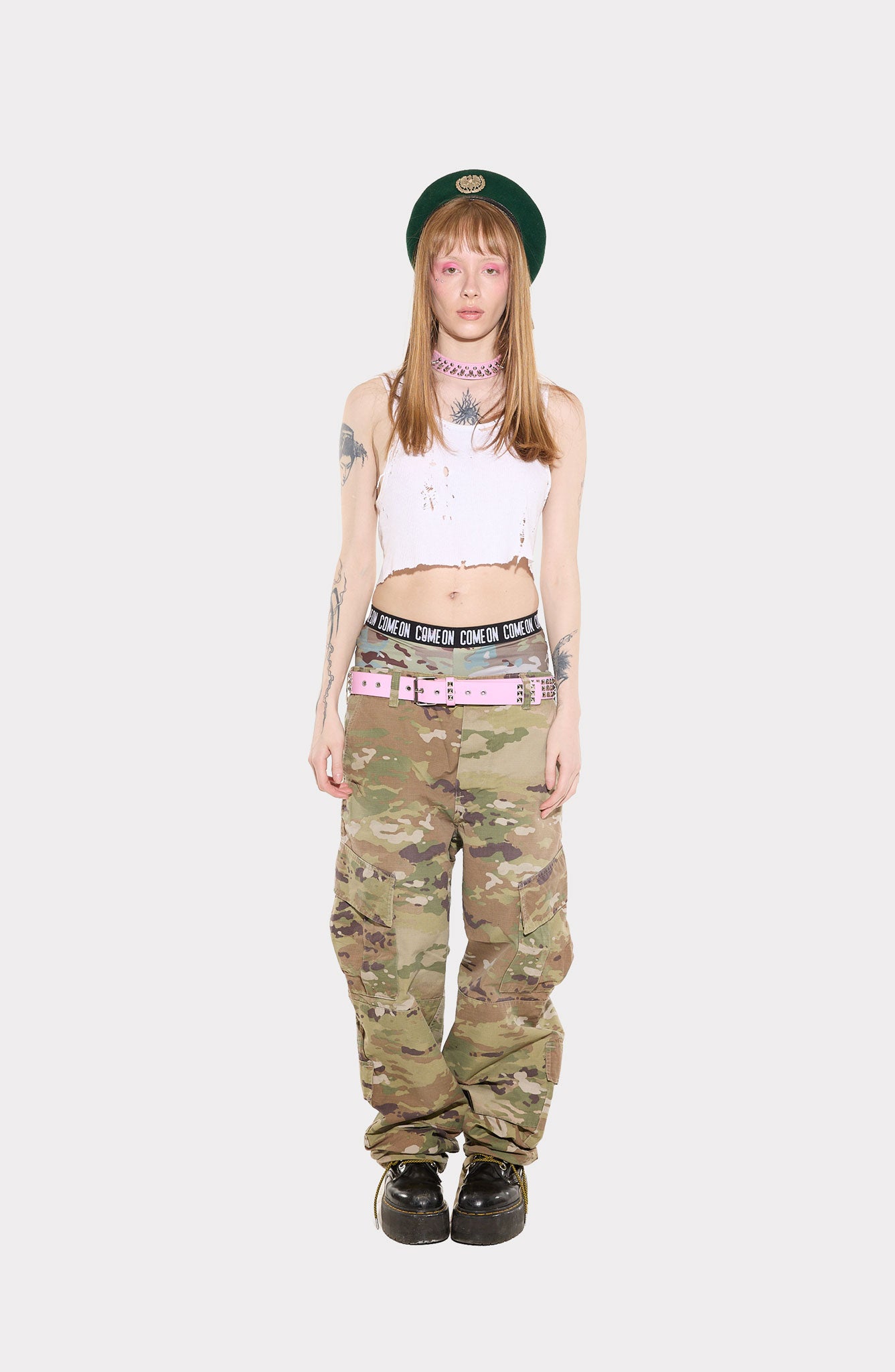 Unisex camo cargo pants, crafted from original COME ON camouflage premium ripstop fabric, featuring multiple functional pockets. Designed with a low-rise, oversized silhouette, metal button closure, and adjustable drawstrings at the ankles and waist. Inspired by military design and made for streetwear.